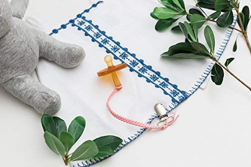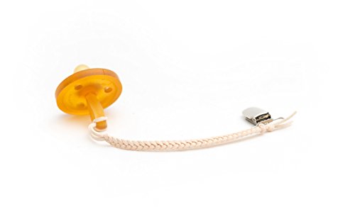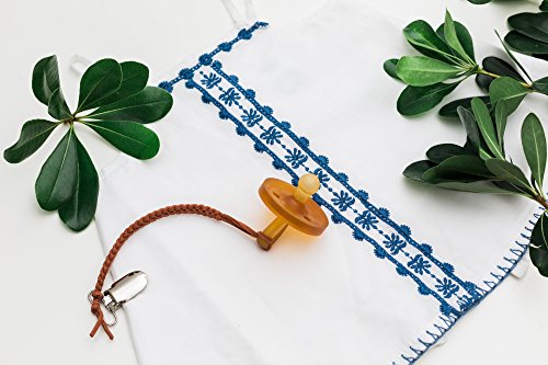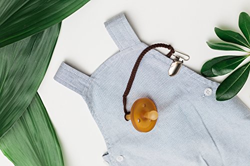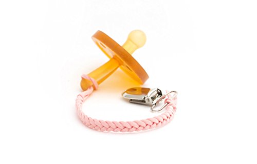 -. Binding : Baby Product -. Brand : Madeline's Box -. Feature : Metal clips have a soft plastic insert to snap on and off easily & will not ruin clothing / 8 inches long & tested to ensure the perfect length / Works with pacifiers, teethers & any item you wish to keep off the ground / Attaches to clothing, car seats, strollers & anywhere else you wish / Each clip is hand made in the USA using extremely soft leather soothing to your baby's skin -. IsAdultProduct : 0 -. Label : Madeline's Box -. Manufacturer : Madeline's Box -. ProductGroup : Baby Product -. ProductTypeName : BABY_PRODUCT -. Publisher : Madeline's Box -. Studio : Madeline's Box -. Title : Madeline's Box Leather Braided Pacifier Clip, Hand-Made in USA