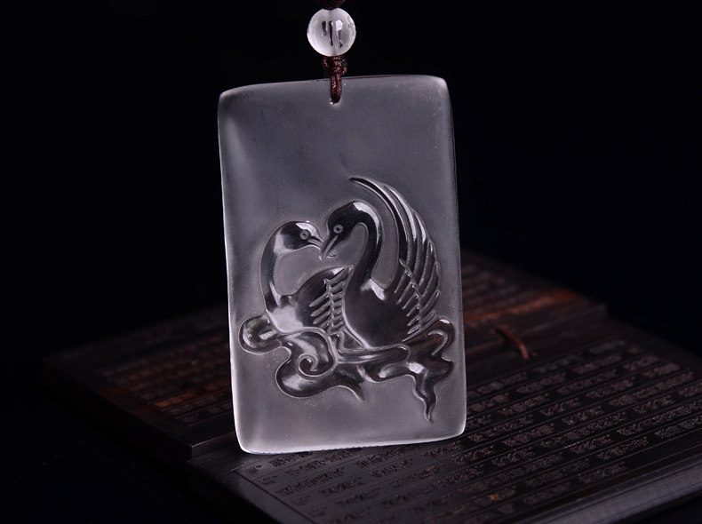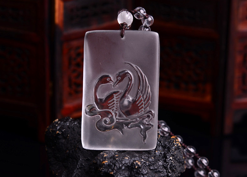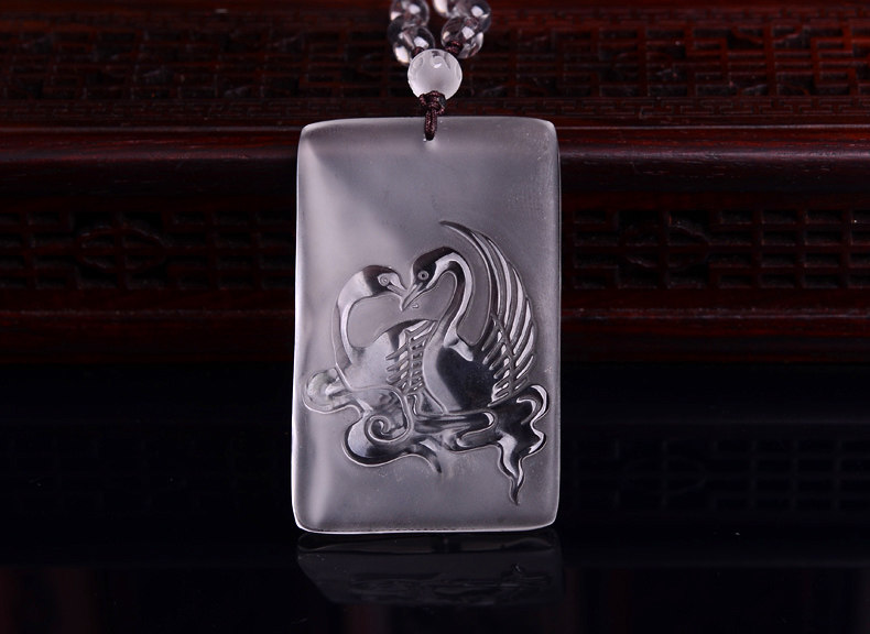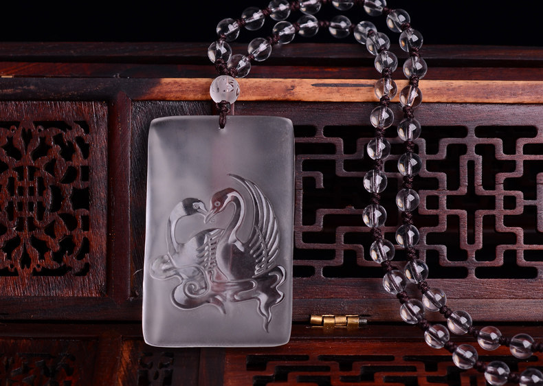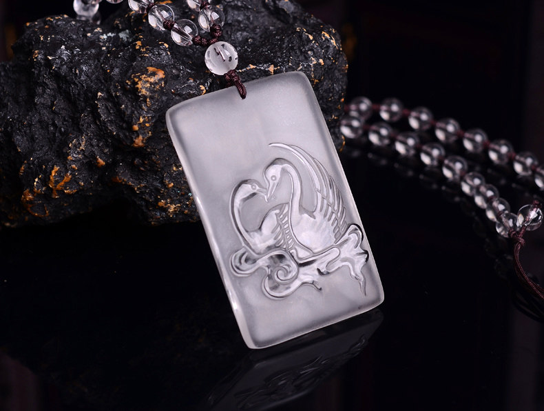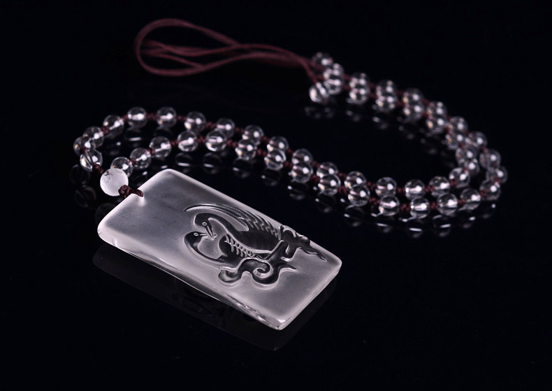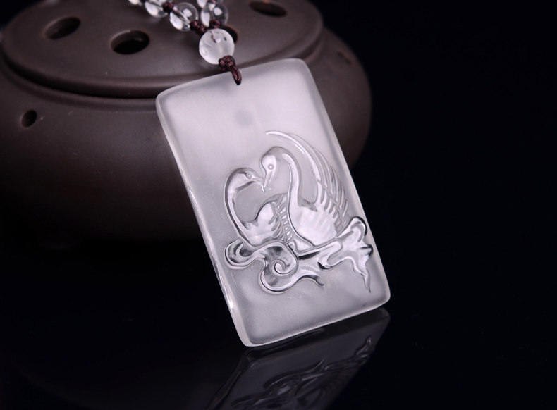 开光 新品天然白水晶护身符 本命佛吉祥物龙凤鸳鸯姻缘扣吊坠