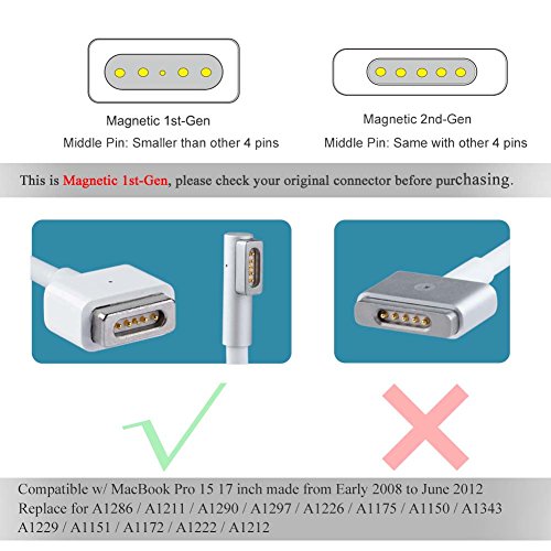 POWER SPECS: Input Volt Range: 100 - 240V / Output: 19V 4.7A Max, 85W / Connector: Magnetic 1st-Gen L-Shaped / Adapter cord: 5.25 ft / Extension cord: 5.9 ft (Enter B071D8TJQLJ to search 85W Magnetic 2nd-Gen T-shaped)