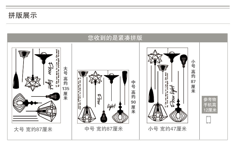 Sizes, "you receive the goods and typesetting" size and "collage after size reference"