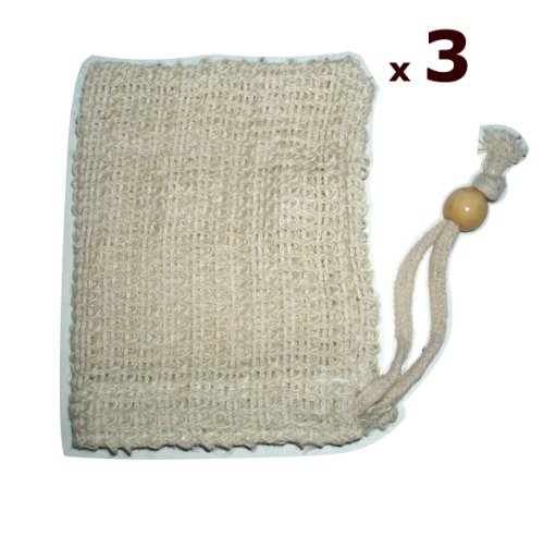 3 pcs/set "Touch Me"® Natural Sisal Soap Saver Bag Sack Pouch Holder, Size: 5.5" (L) x 4" (W), (SPA PLUS is the only authorized seller of Touch Me brand)