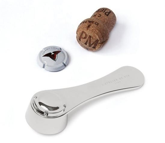 勢いのあるシャンパンコルクを、力の無い方でも簡単・安全に抜くことが出来るシャンパン用ボトルオープナーです。これさえあれば、勢いよく飛び出したコルクで何かが壊れる…なんて事態も起こりません! |
