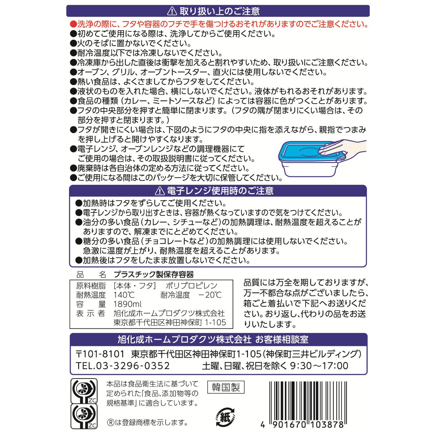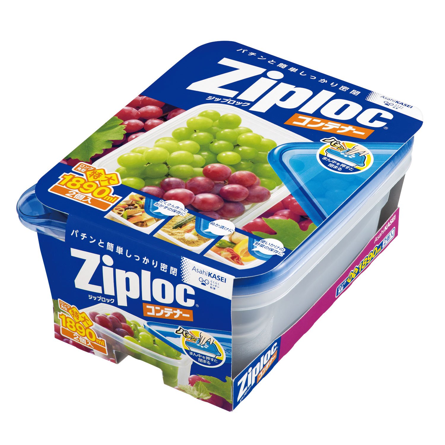 Ziploc container Long angle type oversized 1890ml 2 pieces