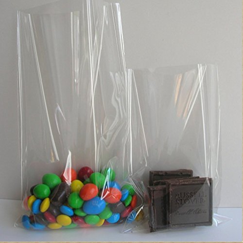 - Bags measure 6" x 8" flat.1.2 mil thick and though enough to handle heavy candies.