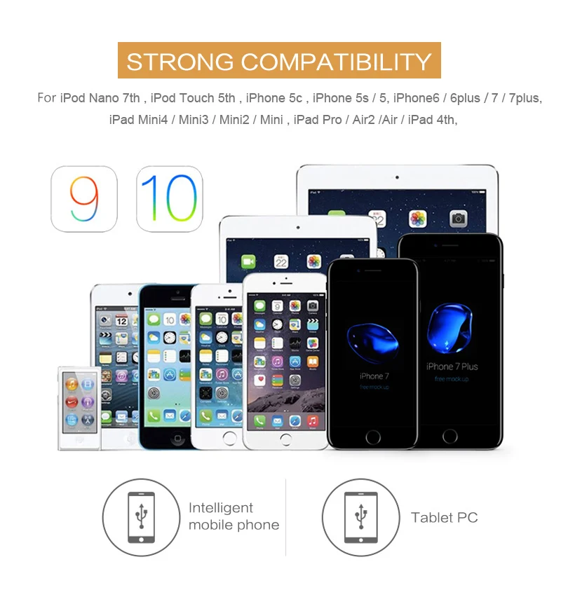 Product:Cable for iPhone 5 5s 6 6Plus 6s 6splus 7 7Plus iPad 2 3 4 air