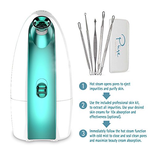 3 STEPS TO PERFECT SKIN - Users of the new NanoSteamer Pro use a 3 step process for perfect skin. 1 - Use the hot facial steam setting to open pores and release impurities. 2 - Use the included professional skin kit to remove stubborn blackheads, whiteheads and other impurities. 3 - Apply desired skin creams and treatments (optional) then immediately follow with the brand new cool mist function to immediately seal clean pores to keep impurities out and lock in creams and lotions.