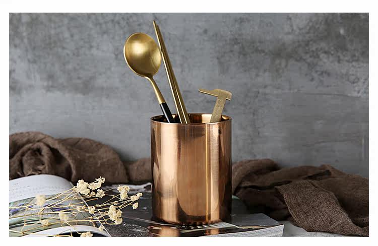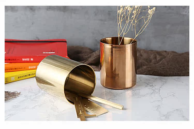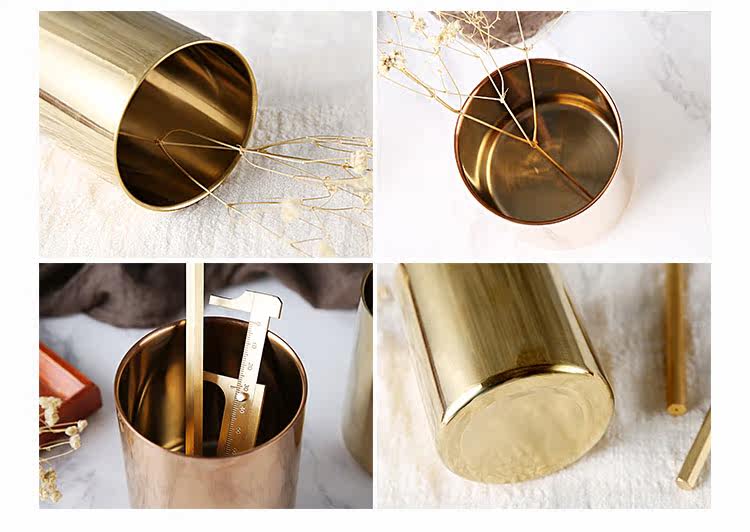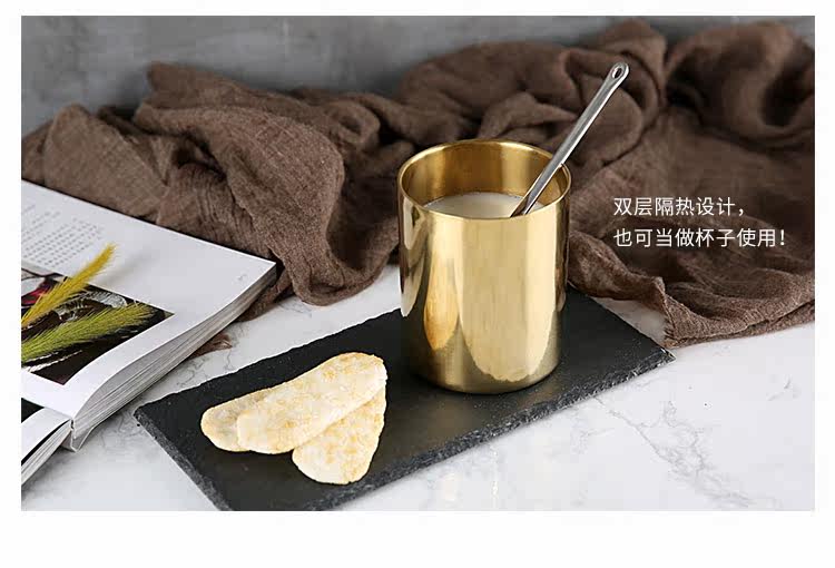304不锈钢咖啡杯随手杯双层防烫镀铜杯子多功能盆栽花瓶笔筒