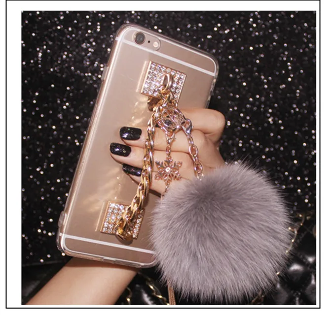 Features:Diamond Fox Rabbit Fur Ball Metal Tassel