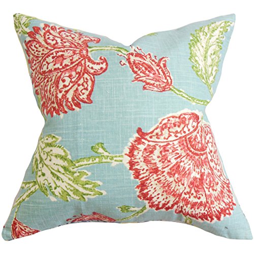 The Pillow Collection Behati Floral Pillow, Aqua Red
