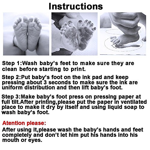 100% BABY SAFE: Ink is made of water, Organic plant glycerol and carbon black that makes no harm to baby skin. Easily create prints and clean up with warm water.