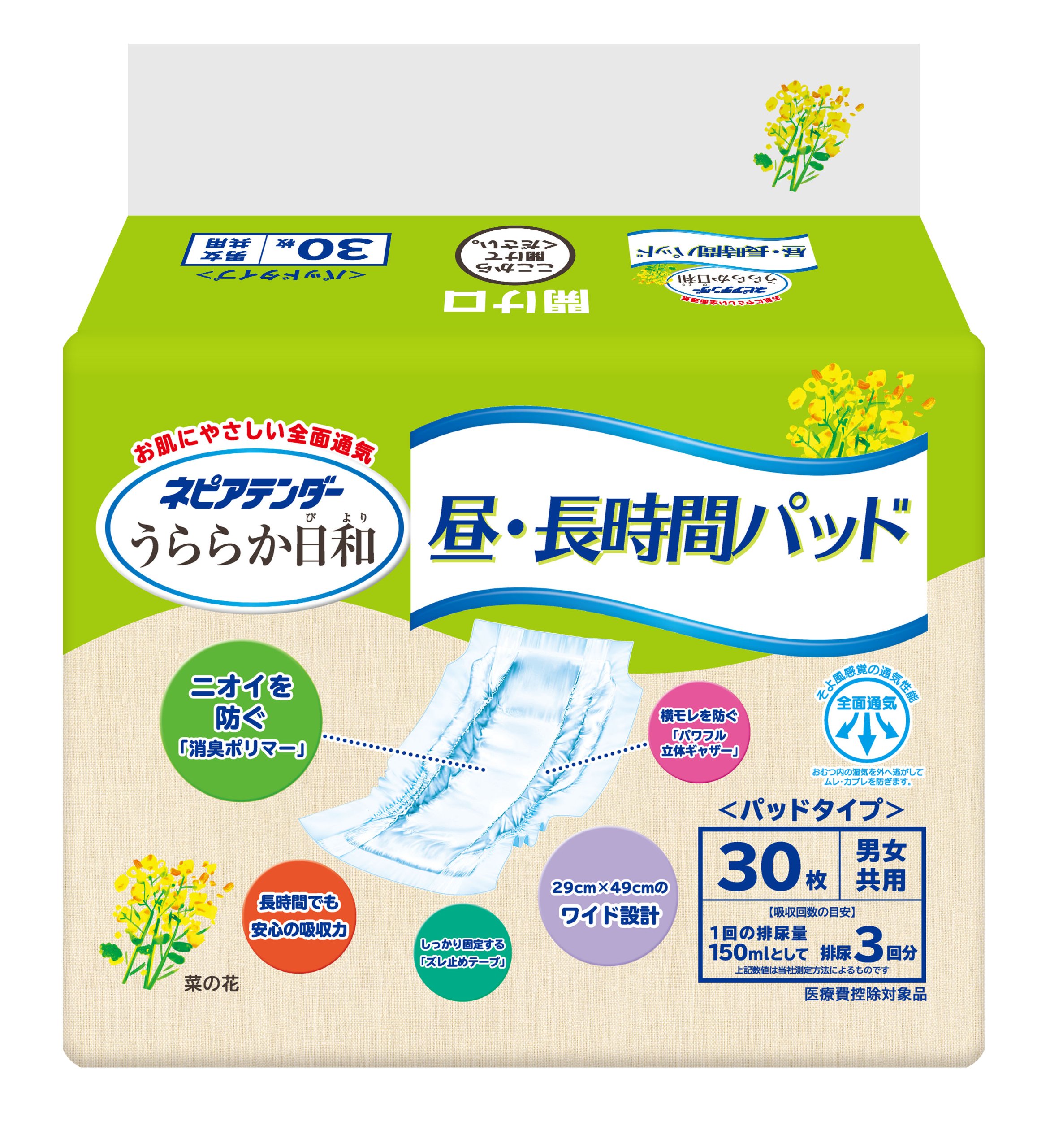 In order to make it easy to distinguish Ura · Omote, design is adopted as backsheet (urine pad, day · long pad, night · long pad).