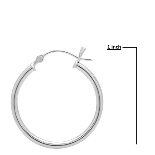 Great for every day wear 14K white gold 1 inch hoop earrings. The earrings are 2mm wide