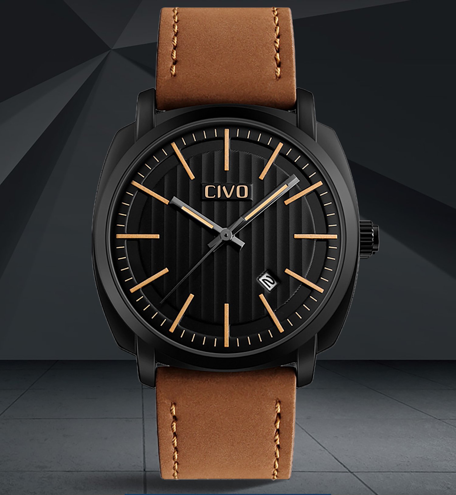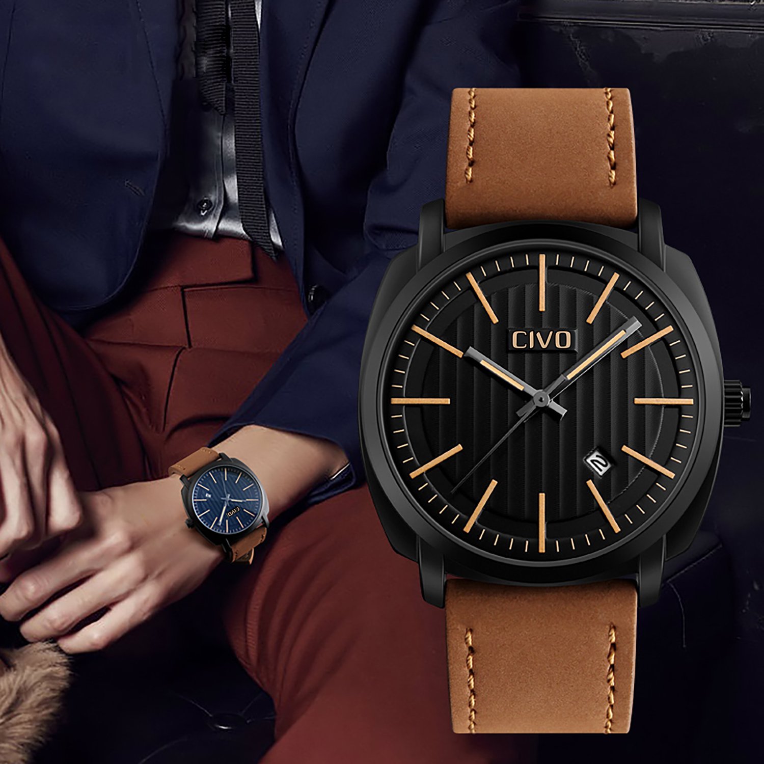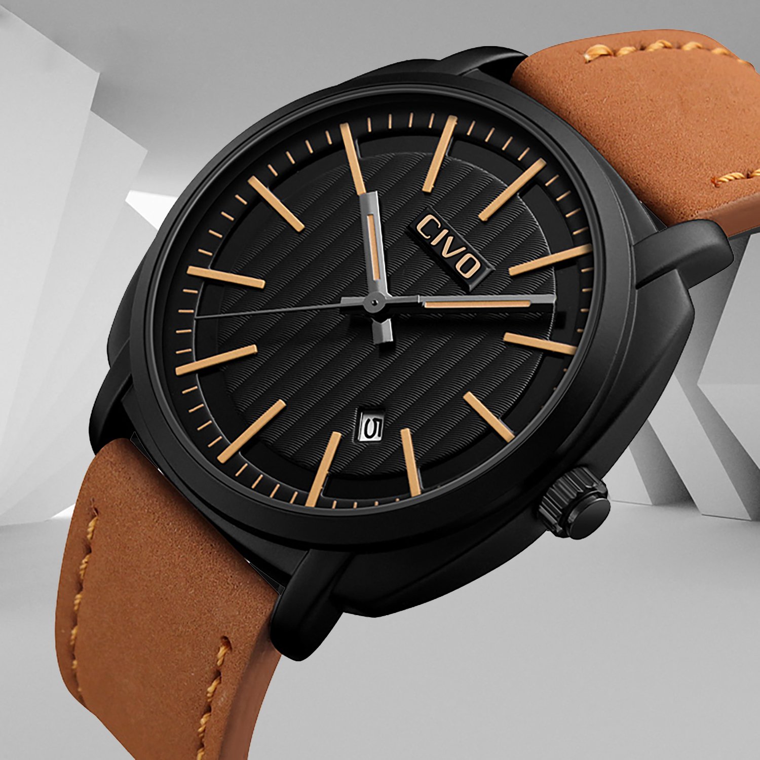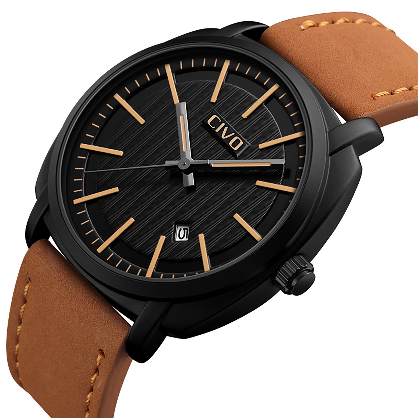 The CIVO quartz wrist watch combines a calf leather belt and a black dial and can be given a business style in casual style.