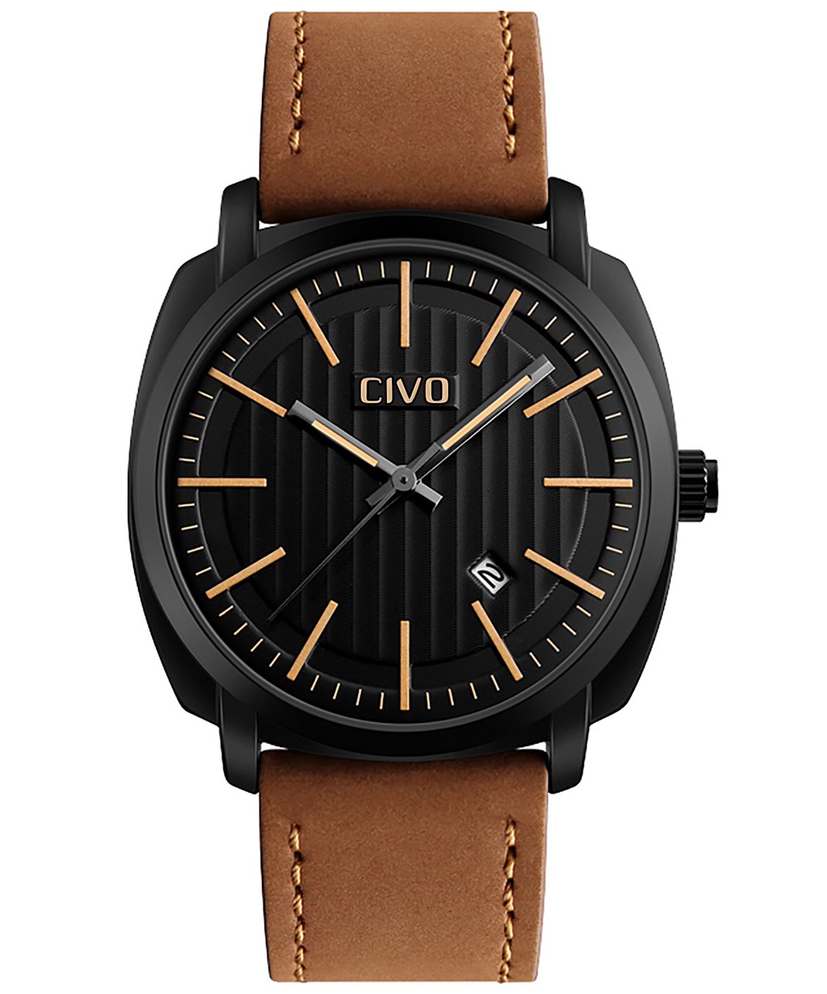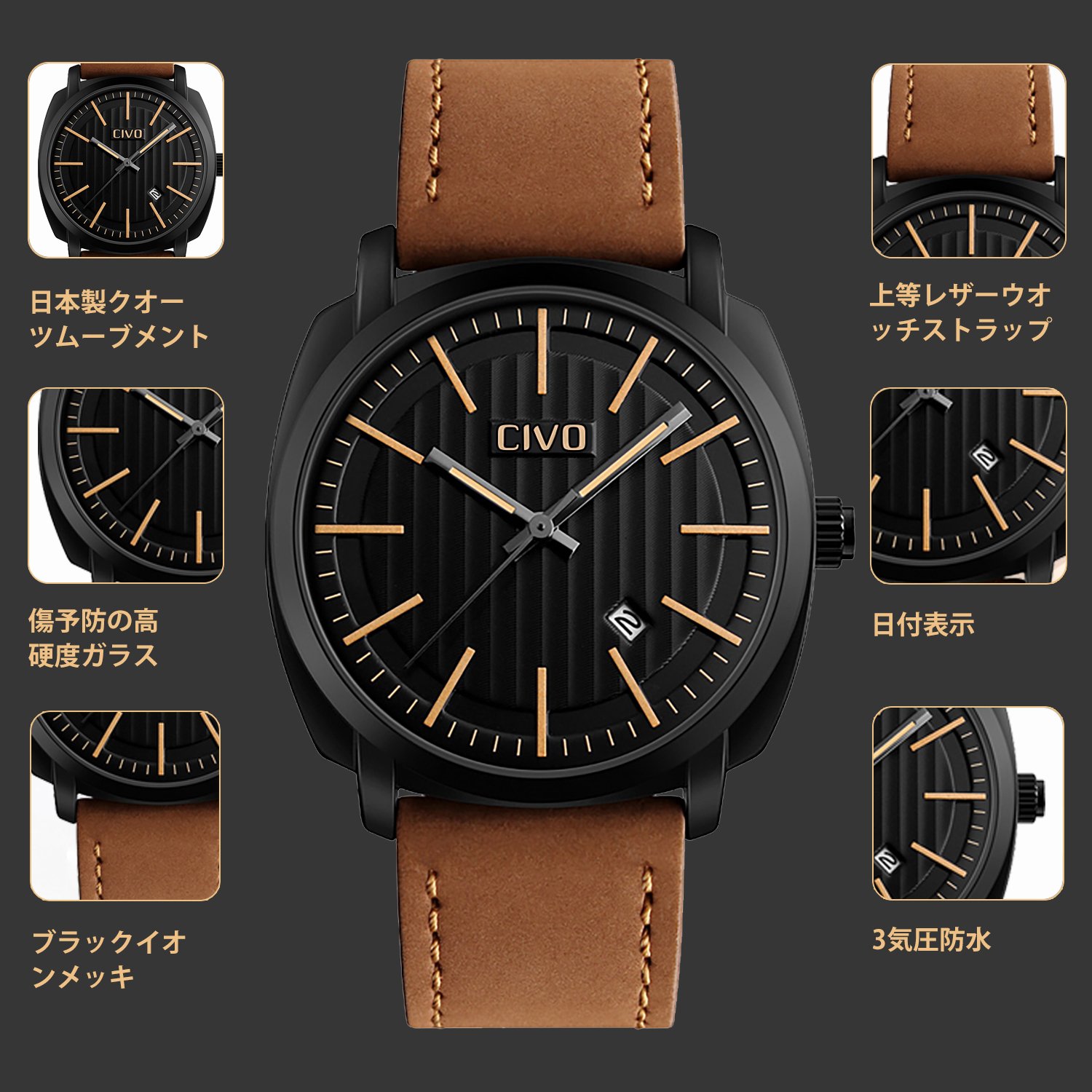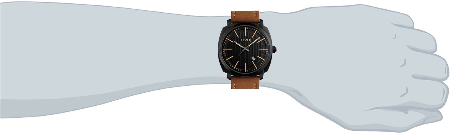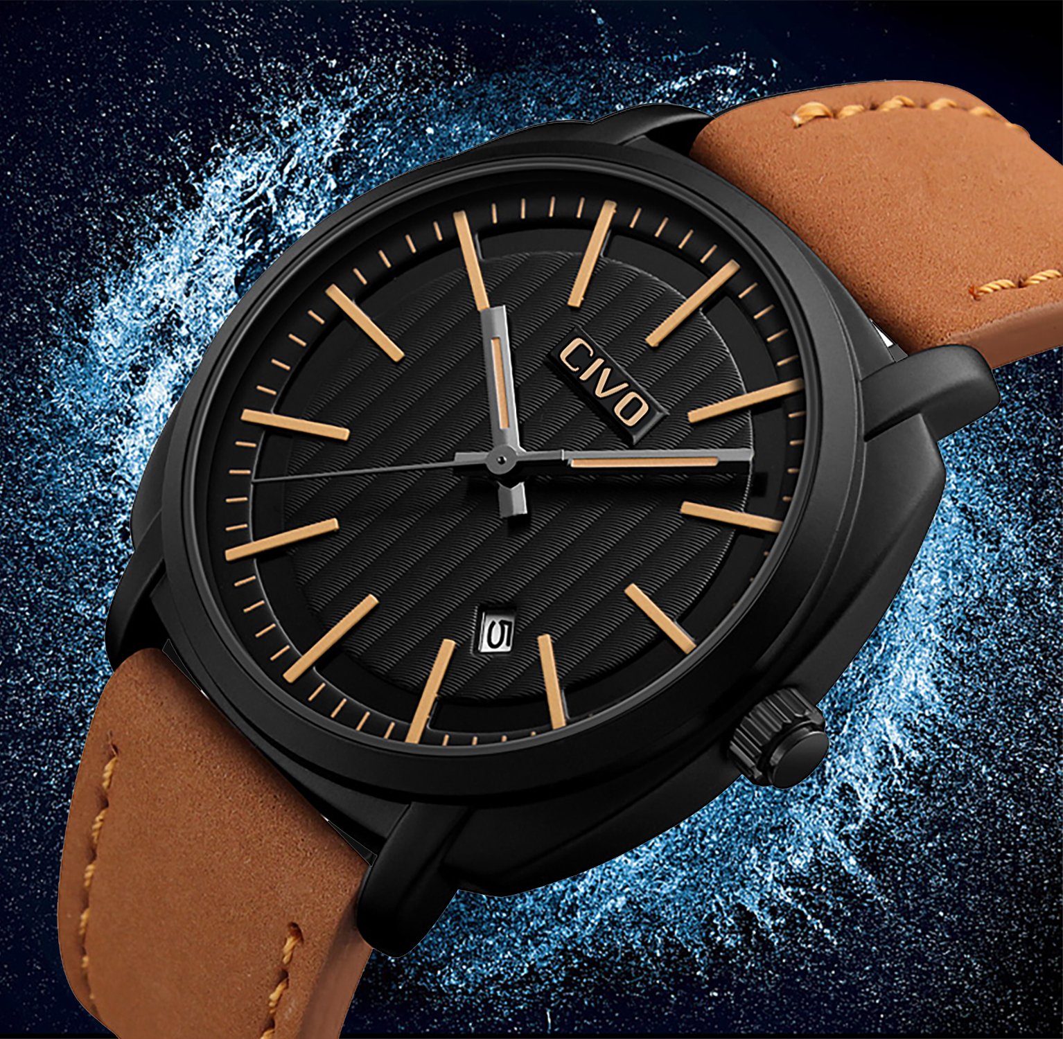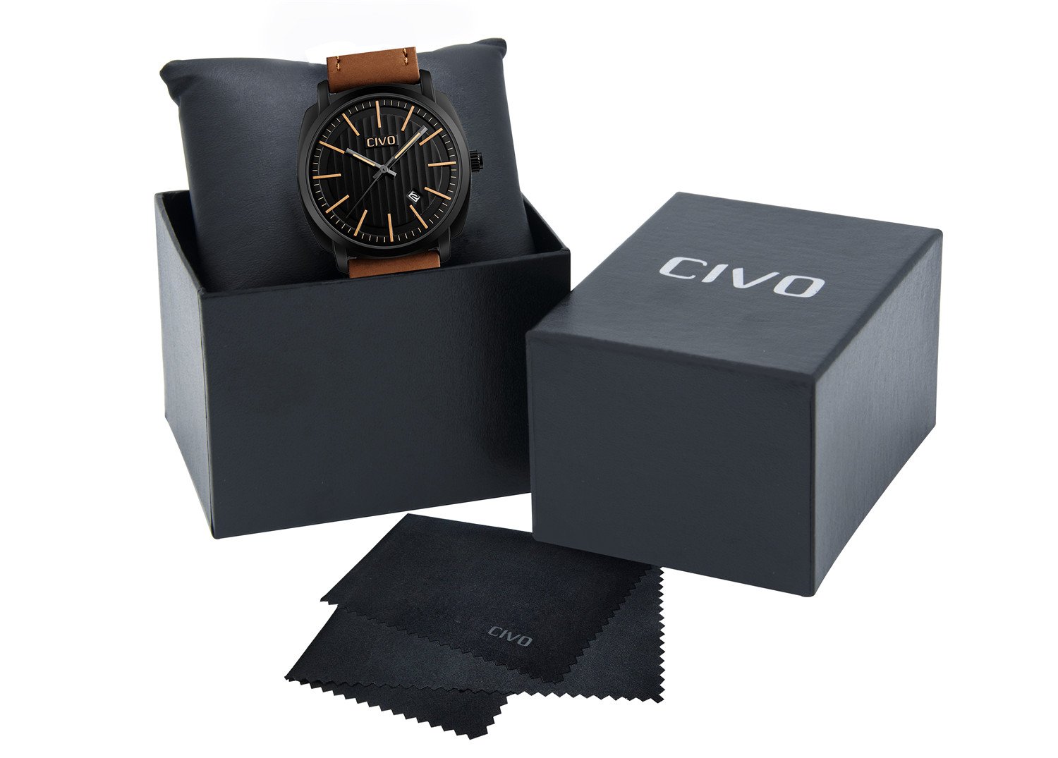 The CIVO quartz wrist watch combines a calf leather belt and a black dial and can be given a business style in casual style.