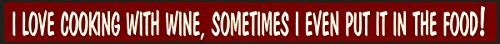 - Reads: "I love cooking with wine, sometimes I even put it in the food!"