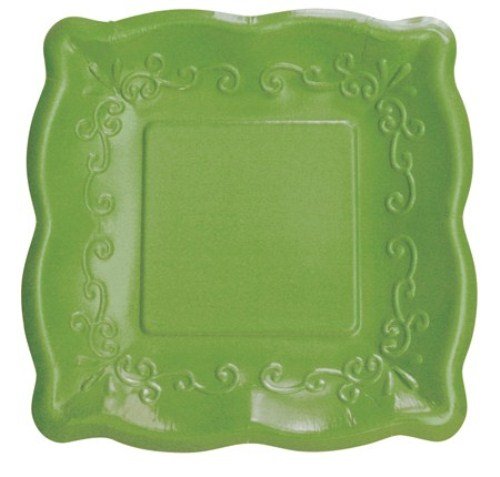 8-Count Elise Scalloped Embossed 7" Square Premium Paper Plates, Verdi