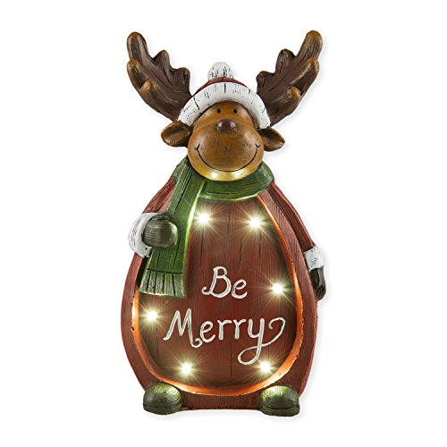 Be Merry Reindeer with Scarf and Hat 15 x 9 Cement Like Christmas Figurine Decoration