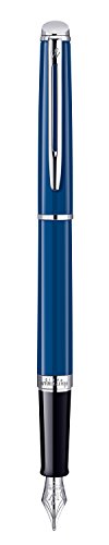 -. Title : Waterman Hemisphere Fountain Pen, Fine Nib, Blue Lacquer with Chrome Trim, Blue Ink Plus 8 Black Refill Cartridges