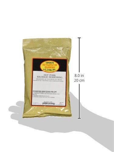 -. Binding : Misc. -. Brand : Old Plantation -. EAN : 0078665001090 -. Feature : Add a little heat to your next batch of Pork Sausage! 1 Bag Seasons 25 pounds of Meat. NO MSG! / Legg's exclusive high-barrier, multi-wall packaging protects the seasoning's freshness and flavor for at least 12 months / Works GREAT for beef or deer also! / Breakdown for less than a 25 lb. batch - 5 Tablespoons of seasoning per 5 lbs. of meat / Mix bags with 25-lbs. of meat. You can use 25 lbs. of lean pork (boneless pork shoulder butts will work if you can't purchase 80/20 pork trim from a butcher shop). Or you can use 22 lbs. of lean pork and 3 lbs. of lean beef. Empty entire bag of seasoning into the 25 lbs. of meat and mix thoroughly (it works best if you cut the meat into small chunks first). Then stuff the sausage into natural hog casings for links. Or you can package the sausage in 1 lb. bulk freezer bags. -. IsAdultProduct : 0 -. Label : A.C. Legg -. Manufacturer : A.C. Legg -. Model : Blend 109 -. MPN : Blend 109 -. PackageQuantity : 1 -. PartNumber : Blend 109 -. ProductGroup : Grocery -. ProductTypeName : GROCERY -. Publisher : A.C. Legg -. Size : 9 Ounces -. Studio : A.C. Legg -. Title : A.C. Legg INC Hot Pork Sausage Seasoning -. UPC : 078665001090
