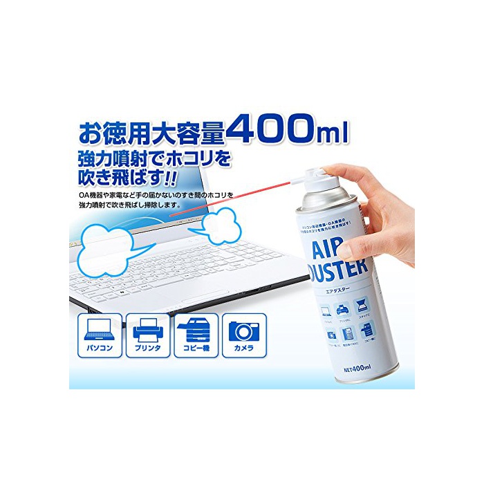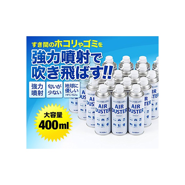 에어 duster 대용량400ml 24개 세트 강력 분사 환경 배려 타입 빈틈의 먼지나 쓰레기를 강력 분사에 불어 빼놓는다!<사양>■들어감수:24개■내용량(1본분):400ml 365g■내용물(1개):HFC152a 100%■부속품:튜브(약14cm)
