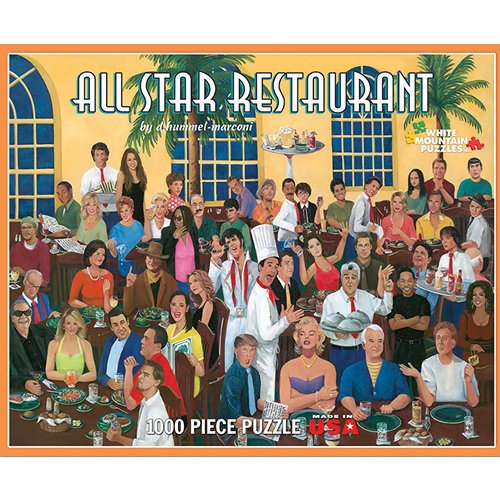 -. Binding : Toy -. Brand : White Mountain Puzzles -. EAN : 0724819252206 -. Feature : Movie Stars / Artist D Hummel-Marconi / Made in USA / Recycled materials / 1000 pieces -. IsAdultProduct : 0 -. Label : White Mountain Puzzles, Inc. -. Manufacturer : White Mountain Puzzles, Inc. -. Model : #635 -. MPN : #635 -. NumberOfItems : 1 -. PackageQuantity : 1 -. PartNumber : #635 -. ProductGroup : Toy -. ProductTypeName : TOYS_AND_GAMES -. Publisher : White Mountain Puzzles, Inc. -. Studio : White Mountain Puzzles, Inc. -. Title : White Mountain Puzzles All Star Restaurant -. UPC : 724819252206