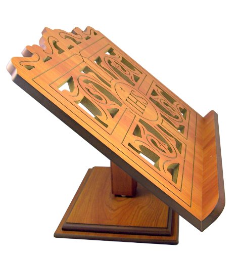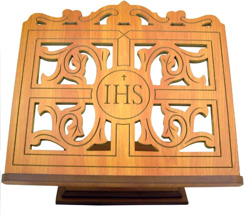 Carved Wood IHS Bible or Book Display Stand with Ledge, Oak, 14 Inch