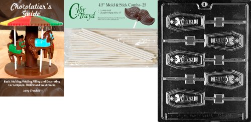 Cybrtrayd 'Casket Lolly' Halloween Chocolate Candy Mold with 25 4.5-Inch Lollipop Sticks and Chocolatier's Guide