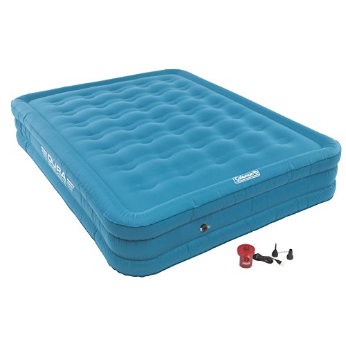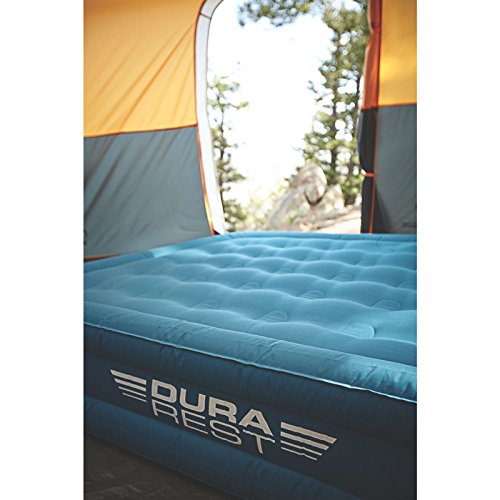 The Coleman Durarest Double High Deluxe Airbed with 120V Pump features a soft touch laminated polyester surface for comfort that lasts night after night. Now 47% more puncture resistant the standard Coleman airbeds. And 25% stronger, 45% lighter than standard Coleman airbeds. Double lock valve keeps the air in where you need it to be. Fits standard size sheets.Feature