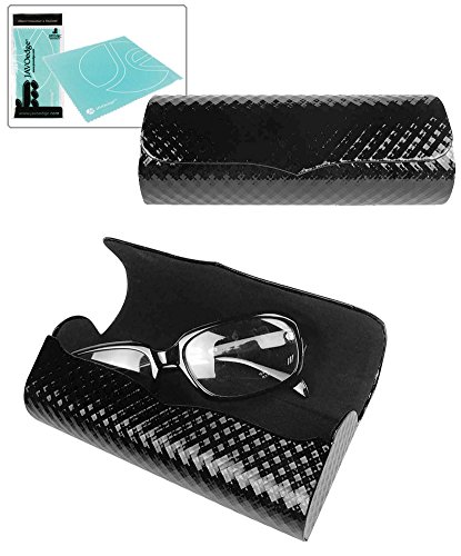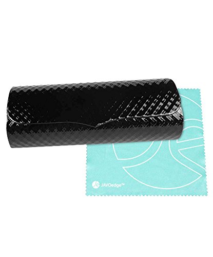 JAVOedge Shiny PU Semi-Hard Eyeglass Case (6.1 in x 2.3 in x 1.2 in) Plus Bonus Microfiber Clea...