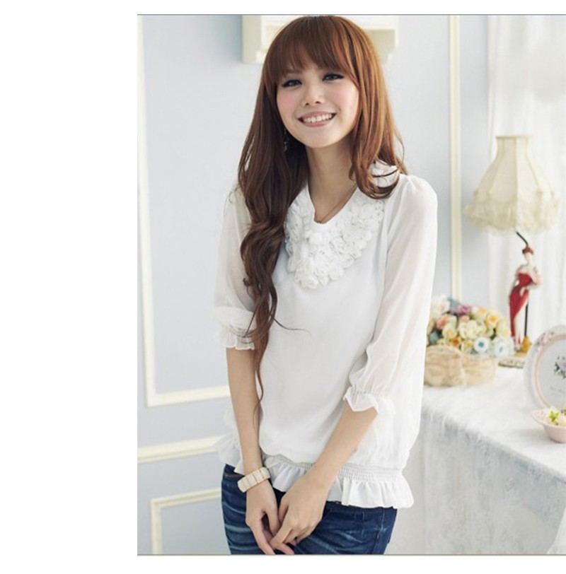 首元の花がかわいらしい◎シフォンブラウス! |