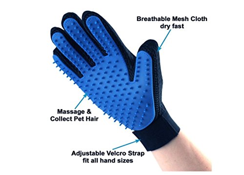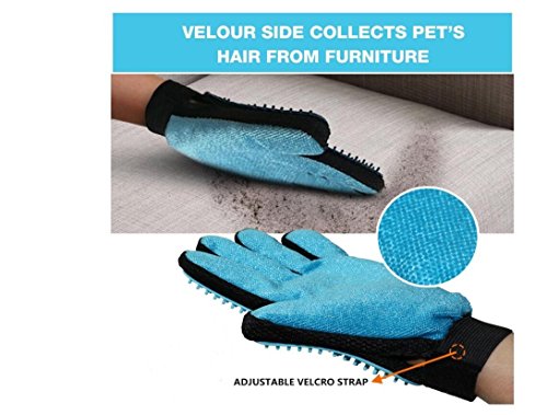 2-in-1 Pet Glove: Grooming Tool + Furniture Pet Hair Remover Mitt Pet Grooming Glove Brush Mitt Shedding Glove Tool Pet Massage Glove Bathing Brush Comb for Dogs, Cats, Horses, Bunnies