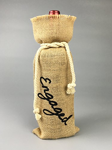 Engagement Party Decorations, Burlap Wine Bag Engagement, Burlap Wine Bottle Gift Bag with Painting (Engaged)