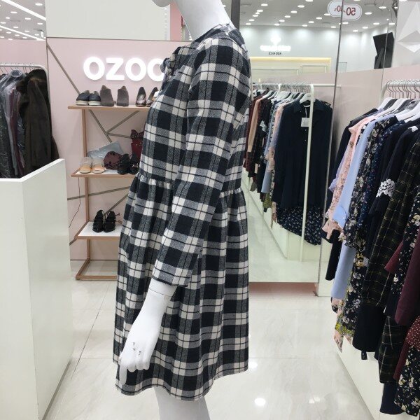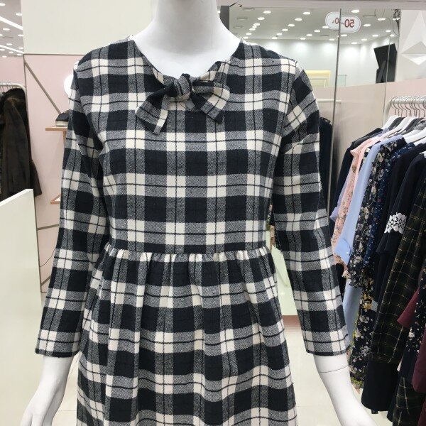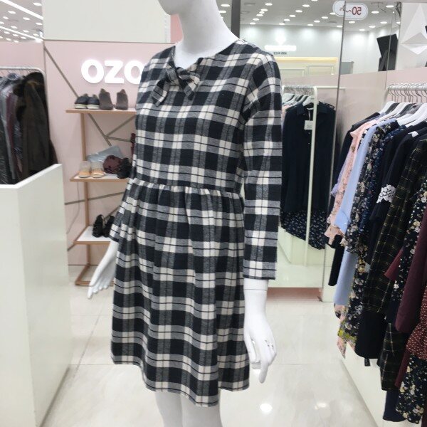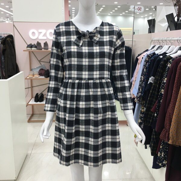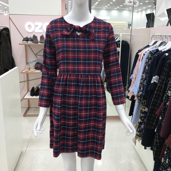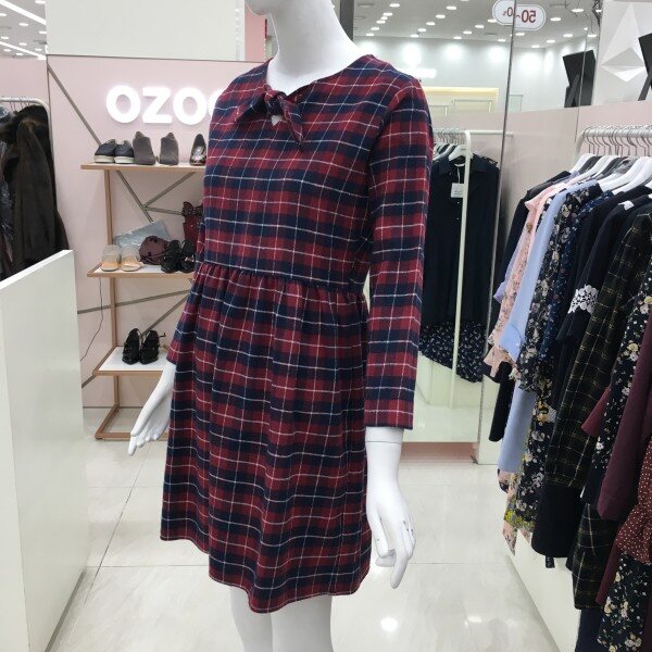 7부 소매의 체크 리본 원피스입니다.걸리시한 느낌이 나는 디자인으로 가을 트렌치나 자켓 안에 매치해주세요.