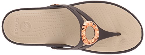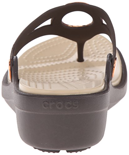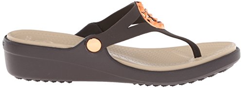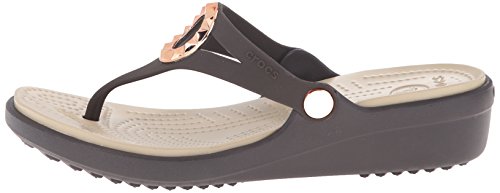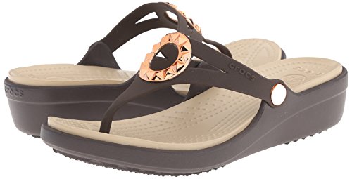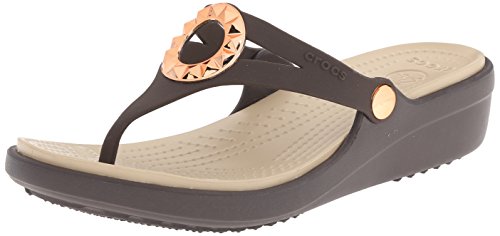 Studio : Crocs Footwear Publisher : Crocs Footwear Binding : Shoes Product Description All of the comfort with a little bit of polish the Sanrah Wedge Flip is made with our Croslite foam so it's light and cushiony. We've updated them with a studded embellishment with a metallic finish to make them more playful and versatile, and the wedge heel gives you just enough lift without compromising comfort. 0
