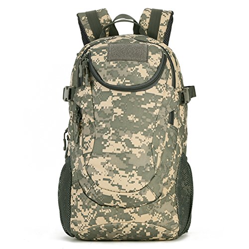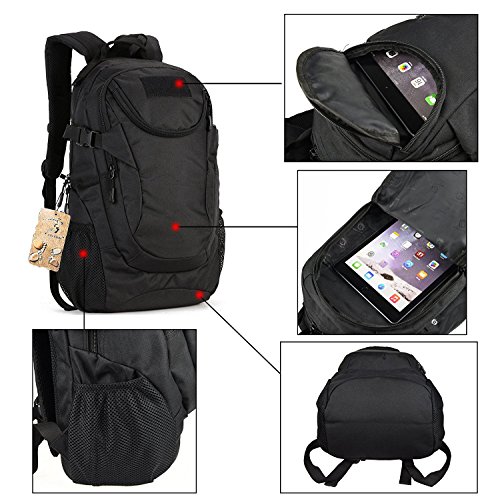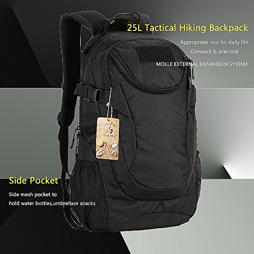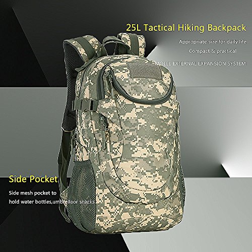 -. Title : 25L Tactical Military Hiking Backpack Compact Travel Daypack MOLLE Rucksack Marpat Backpack for Outdoor Camping War Game Trekking School Travelling - Black