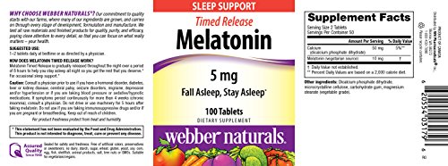 ReleaseDate : 2015-04-08 Studio : Webber Naturals Publisher : Webber Naturals Binding : Health and Beauty Product Description Many people experience occasional sleeplessness. It can have a number of causes, including difficulty falling asleep, restless sleep, or waking too early. Melatonin is a natural sleep product that can help you sleep well and awaken refreshed. Melatonin is produced in the pineal gland inside the brain each day when darkness falls. It is part of the "internal clock" that prepares the body for sleep. But this clock can get out of phase due to work schedules, jet lag, or occasional stress. Research shows that taking a melatonin supplement an hour before bed can support more natural sleep. Melatonin works with the body's natural sleep cycles to support REM sleep. Safe and effective Melatonin Timed Release from webber naturals provides just the right amount of melatonin throughout the night to help you fall asleep, stay asleep, and awaken more refreshed, with no next-day grogginess. 0