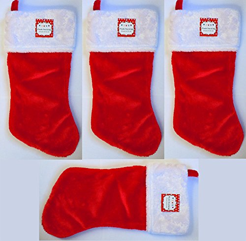 18" Plush Deluxe Red Christmas Stocking (4 Pack) W/White Plush Cuff & Red Hanging Tag