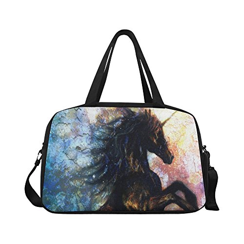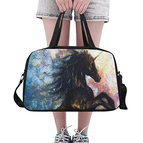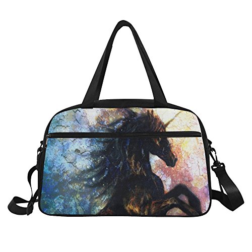 (InterestPrint)/Accessories/Luggage, Bags Travel/DIRECT FROM USA/InterestPrint Travel Duffel Tote Bag with Shoes Compartment for Women Men Black Unicorn Danci...
