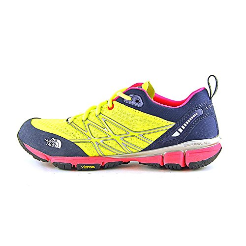 You're a superstar and you should have a versatile running shoe that deserves to be on your feet. Enter The North Face Women's Ultra Kilowatt Running Shoe. This sleek shoedoesn't mess with overlays or awkward construction. Instead, the Kilowatt staysout of your way to give your feet free rein regardless of the activity. Whether you're firmly fixed on training for that next big line or running to the gym for functional fitness fun, the Kilowatt shines bright light. The Ultra Airmesh and FlashDry Fibers turn the top of the Kilowatt into aquick-drying, breathable piece of shoe splendor that friendly for sockless feet. TheEVA insole kicks off the cushioning without adding weight to the shoe. In the midsole, a full-length layer ofPebax serves to stabilize your heel and footstrike while standing guard againstroots and rocks and crumbling concrete underneath your toes. EVA cushions anddisperses the impact of your landings while bouncing back to keep you boppingalong. Vibram rubber on the bottom has a few lugs for good luck and lots oflittle lines to stay pliable over the long haul.Feature