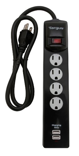 Protect your precious electronics with the Targus 4 Outlet Surge Protector featuring 2 USB ports Ideal for bedside or desktop environments with mobile friendly charging stations for your portable electronics.