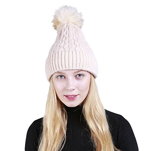 (Gaweb)/Accessories/Cold Weather Accessories/DIRECT FROM USA/Gaweb Women Knitted Beanie Big Fluffy Ball Wavy Striped Winter Fashion Ski Hat Cap