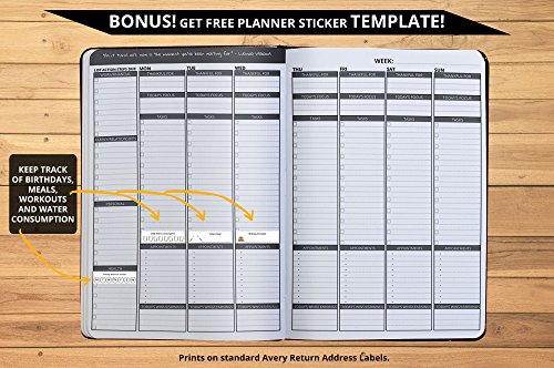 *BONUS* FREE PLANNER STICKER TEMPLATE – printable from any laser printer on Avery Return Address Labels 5167/8167 let you easily track fitness workouts, water intake, meals and birthdays!