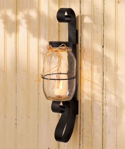 - Title : Set of 2 LED Flickering Candles and Wrought Iron Canning Mason Jar Candleholder Sconce Decor Wall Hanging Home Accent Metal Scrollwork Decorative Vase Candle Holder Decoration