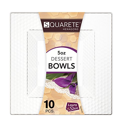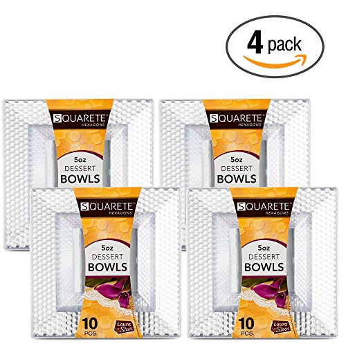 Squarete Hexagons Crystal Clear Hard Plastic Elegant Disposable 5 Ounce Square Dessert Bowls 10 Bowls Per Package Pack Of 4