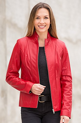 Studio : Overland Sheepskin Co. Publisher : Overland Sheepskin Co. Binding : Apparel Product Description Take on the town in the Greenwich leather jacket. Luxurious Spanish leather is sculpted into a shapely urban design that flatters your figure and pairs with casual wear and out-on-the-town evening wear alike. Our three-season leather jacket features a zip front and standup collar, with a shiny graphic lining to finish the look. Front pockets are invisibly built into the seams with hidden magnets to keep them closed and secure. 22.5" long. Made in Turkey. S (6), M (8-10), L (12), XL (14) 0 |