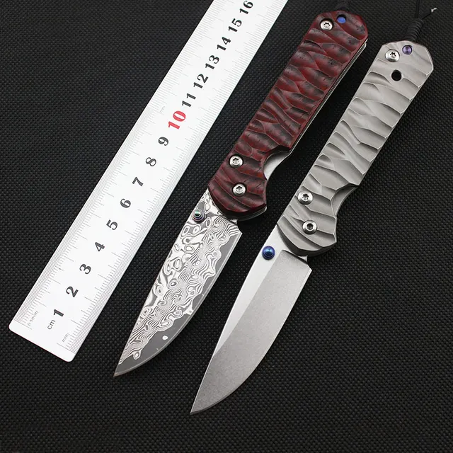 | [해외] 높은 품질 d2 또는 다마스커스 블레이드 titanium 합금 핸들 접는 나이프 포켓 사냥 칼 캠프 전술 생존 나이프 edc 도구 |