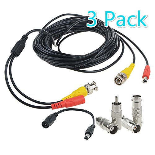 Flashmen 25 ft 3 Pack BNC Video Power Cable Security Camera Wire Cord for CCTV DVR Surveillance System One Cable with 2x BNC to RCA Connectors 2x BNC to BNC Connectors 1x DC Plug Adapter
