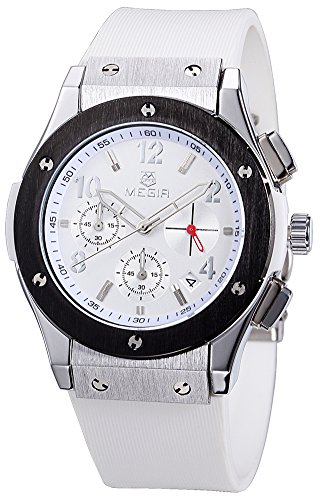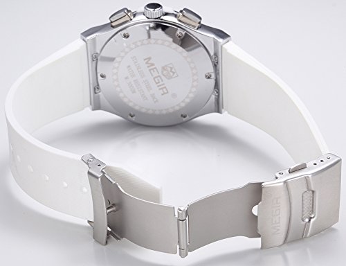 Megir MEGIR 레이디스 실리콘 밴드 합금 케이스 크로노그래프 방수 워치 스포츠 쿼츠 손목시계 3002M (화이트)