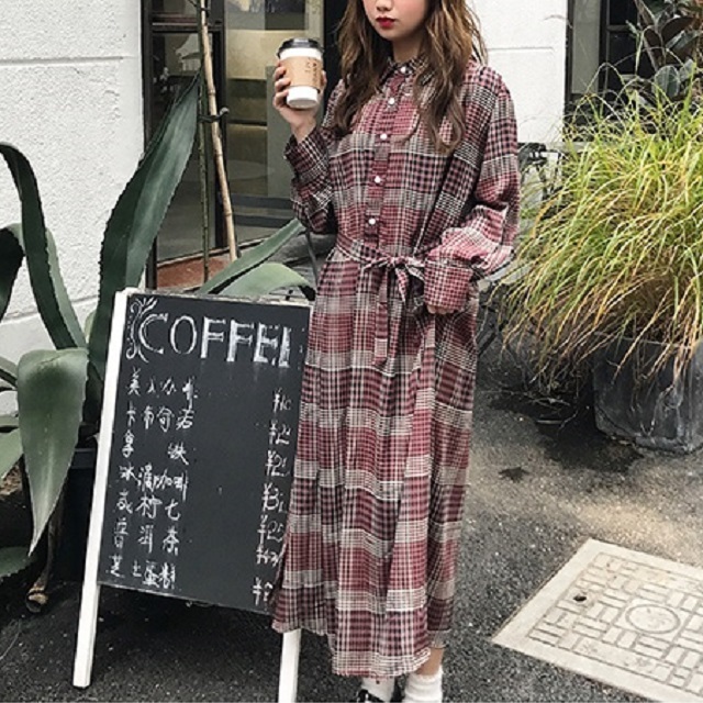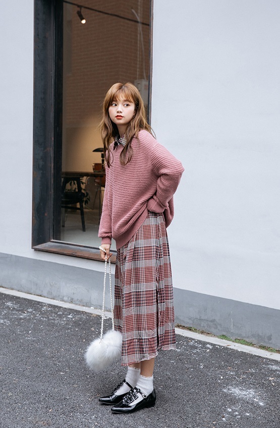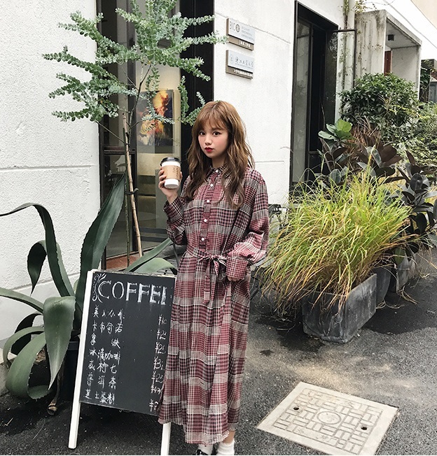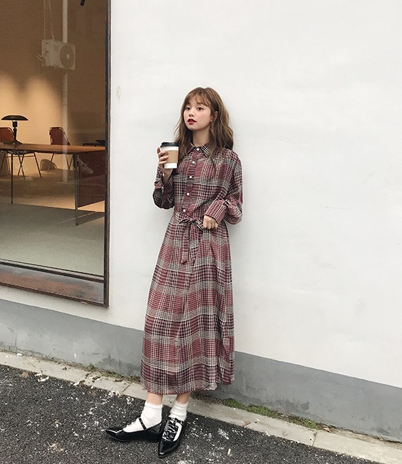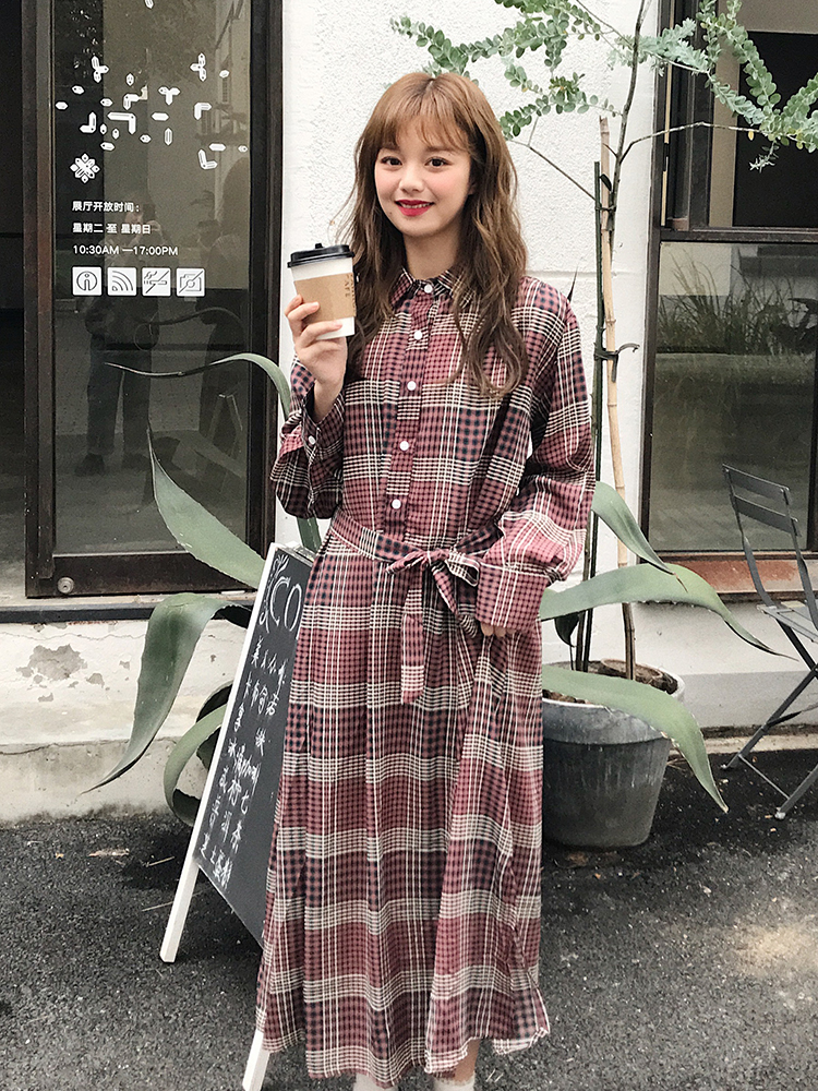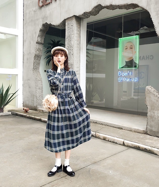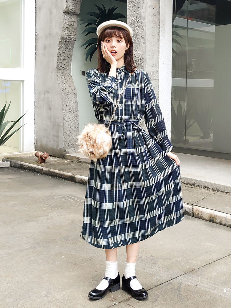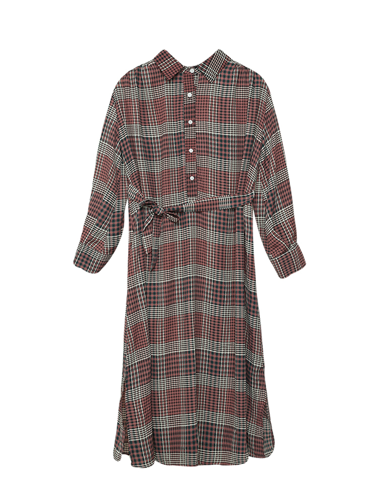 ガーリーになりがちなチェック柄がシックなお色と合わさり、上品なきれいめワンピースに。