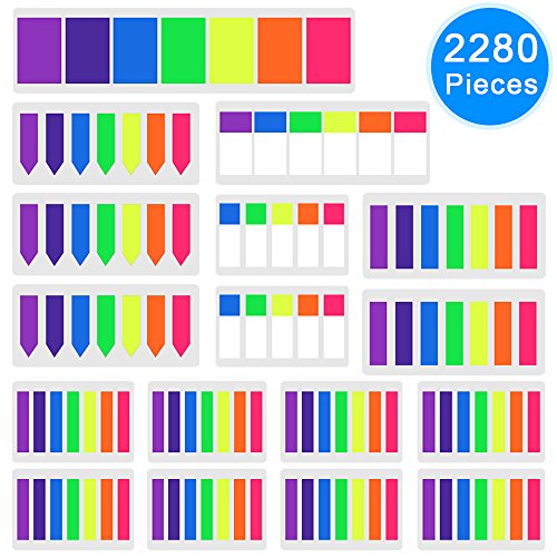 AUSTOR 2280 Pcs Colored Sticky Neon Flags Index Tabs Page Markers Highlight Strips Writable Labels Page for Marking and Highlighting, 17 Sets